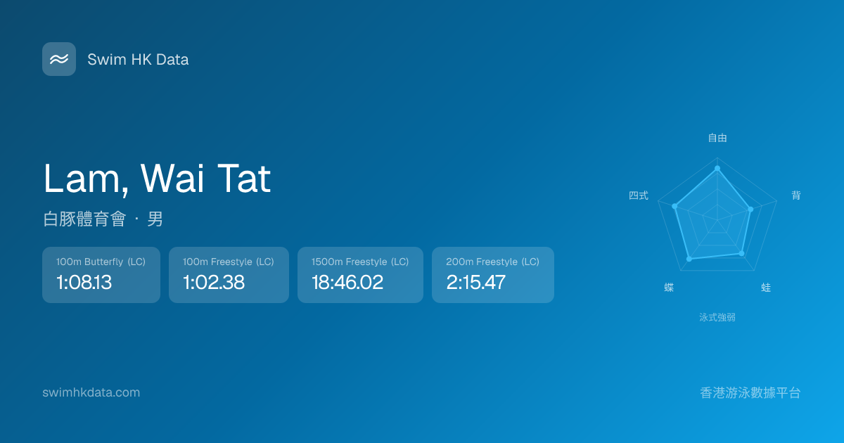 此圖表根據你所有比賽成績計算,顯示你在各泳式的相對強弱,僅供參考。繼續努力,每一次練習都會讓你更快更強!💪