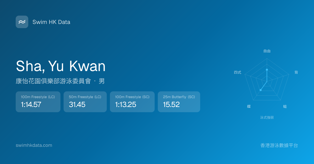 此圖表根據你所有比賽成績計算,顯示你在各泳式的相對強弱,僅供參考。繼續努力,每一次練習都會讓你更快更強!💪