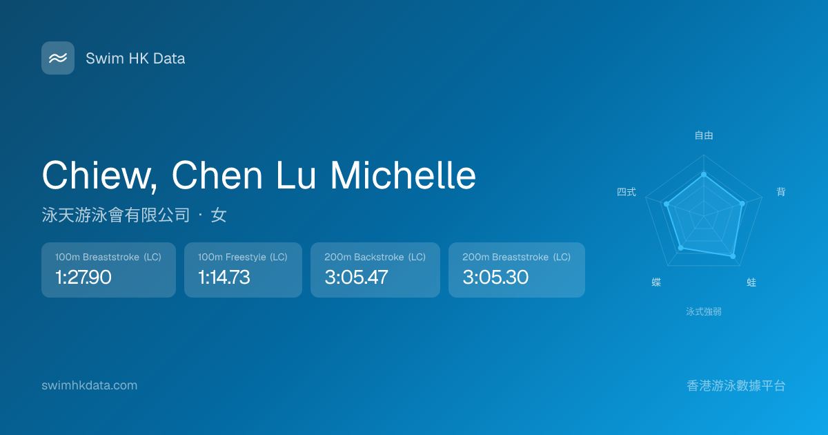 此圖表根據你所有比賽成績計算,顯示你在各泳式的相對強弱,僅供參考。繼續努力,每一次練習都會讓你更快更強!💪