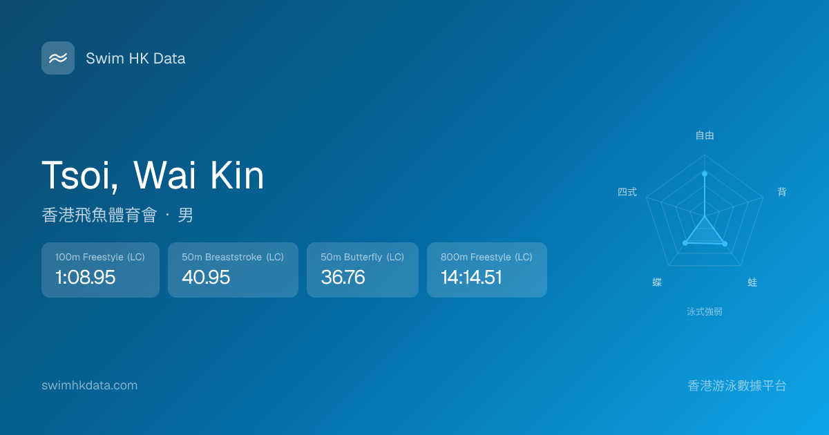 此圖表根據你所有比賽成績計算,顯示你在各泳式的相對強弱,僅供參考。繼續努力,每一次練習都會讓你更快更強!💪