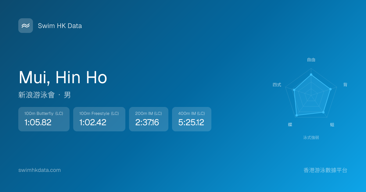 此圖表根據你所有比賽成績計算,顯示你在各泳式的相對強弱,僅供參考。繼續努力,每一次練習都會讓你更快更強!💪
