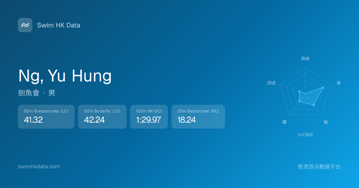 此圖表根據你所有比賽成績計算,顯示你在各泳式的相對強弱,僅供參考。繼續努力,每一次練習都會讓你更快更強!💪