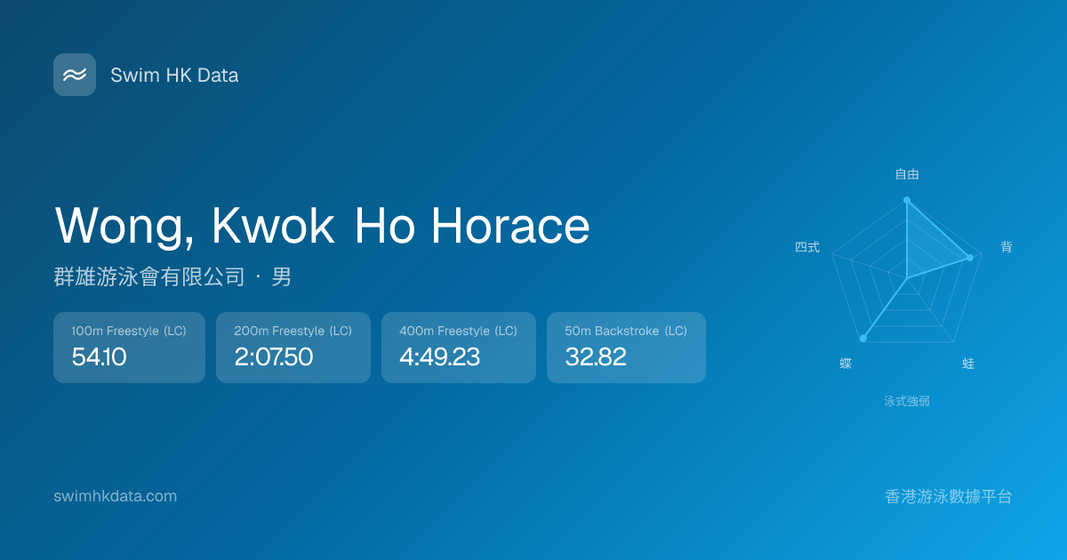 此圖表根據你所有比賽成績計算,顯示你在各泳式的相對強弱,僅供參考。繼續努力,每一次練習都會讓你更快更強!💪