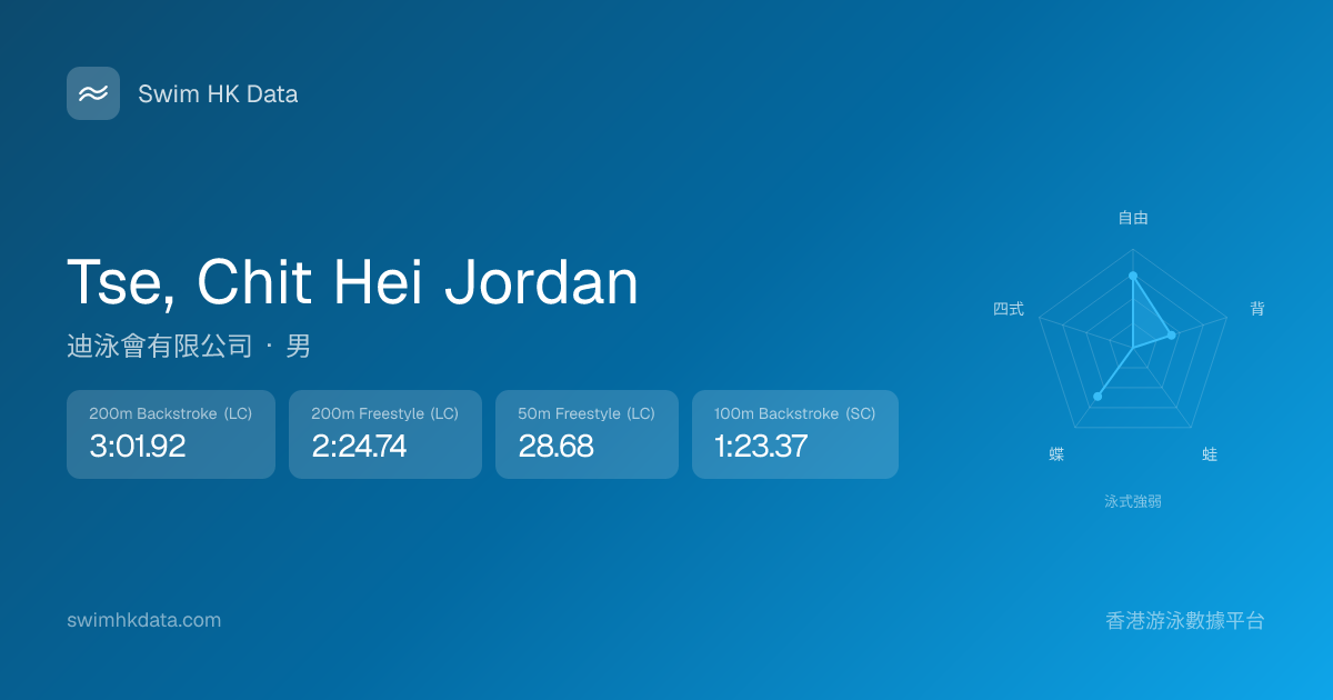 此圖表根據你所有比賽成績計算,顯示你在各泳式的相對強弱,僅供參考。繼續努力,每一次練習都會讓你更快更強!💪