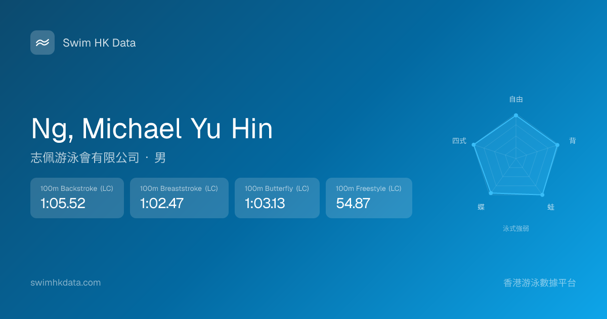 此圖表根據你所有比賽成績計算,顯示你在各泳式的相對強弱,僅供參考。繼續努力,每一次練習都會讓你更快更強!💪