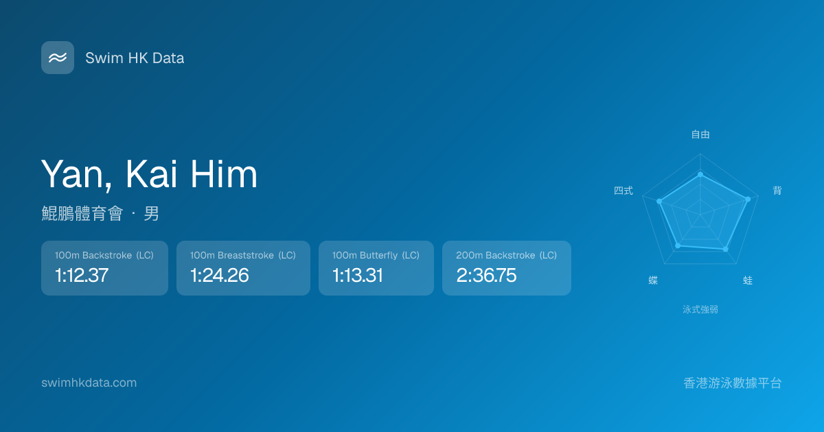此圖表根據你所有比賽成績計算,顯示你在各泳式的相對強弱,僅供參考。繼續努力,每一次練習都會讓你更快更強!💪
