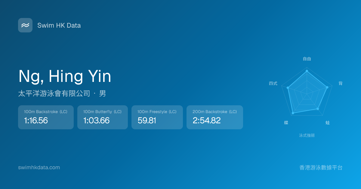 此圖表根據你所有比賽成績計算,顯示你在各泳式的相對強弱,僅供參考。繼續努力,每一次練習都會讓你更快更強!💪