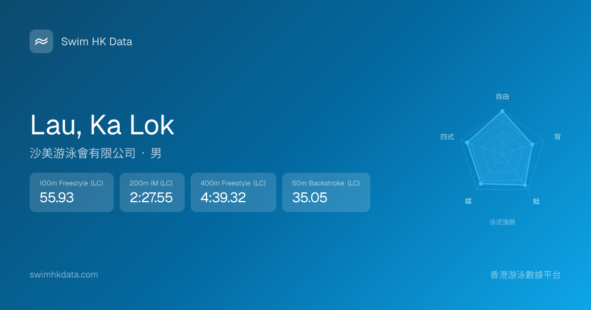 此圖表根據你所有比賽成績計算,顯示你在各泳式的相對強弱,僅供參考。繼續努力,每一次練習都會讓你更快更強!💪