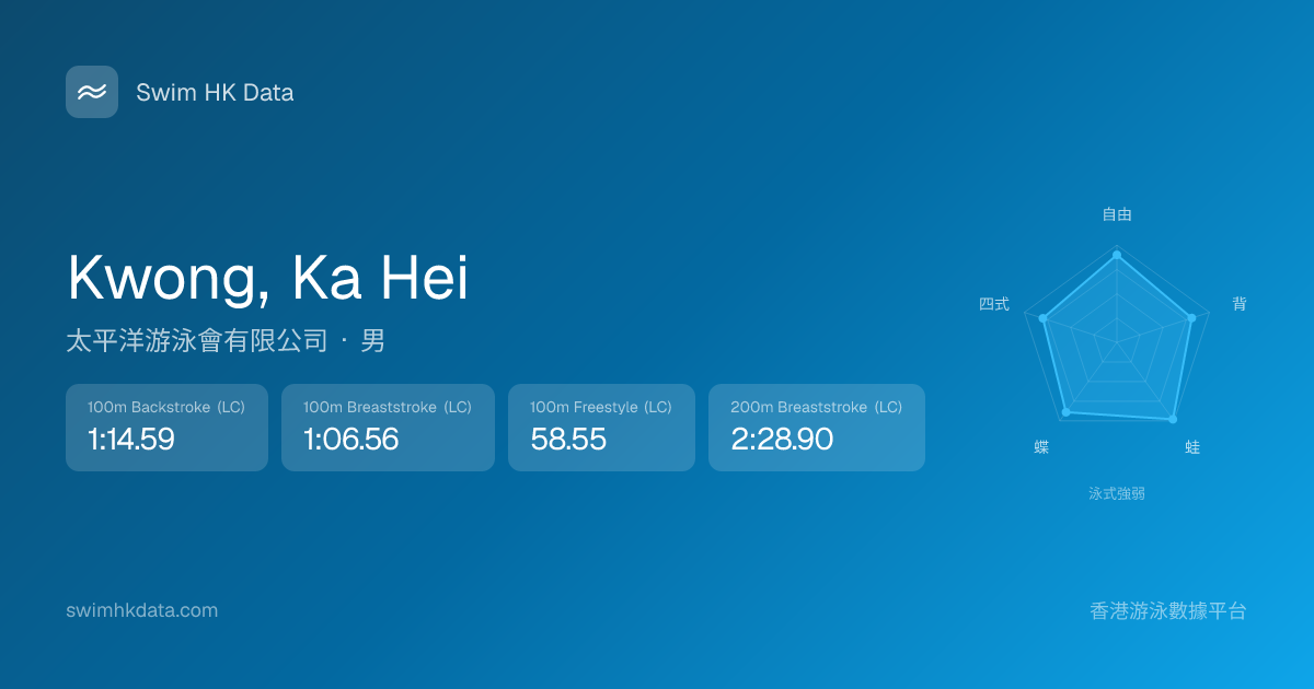 此圖表根據你所有比賽成績計算,顯示你在各泳式的相對強弱,僅供參考。繼續努力,每一次練習都會讓你更快更強!💪