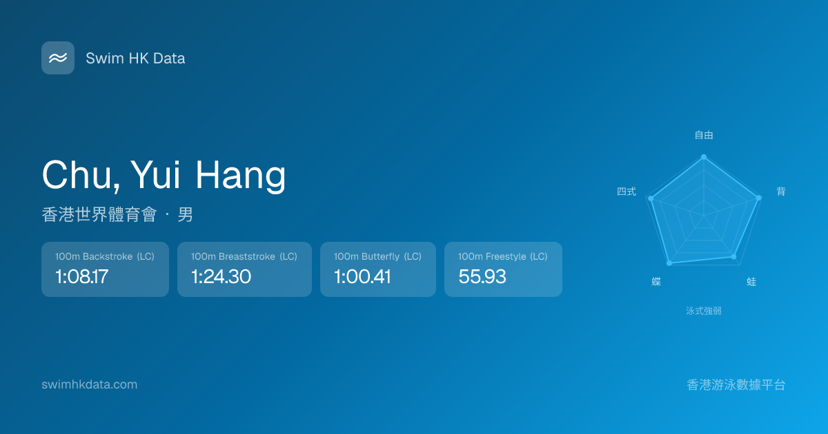 此圖表根據你所有比賽成績計算,顯示你在各泳式的相對強弱,僅供參考。繼續努力,每一次練習都會讓你更快更強!💪
