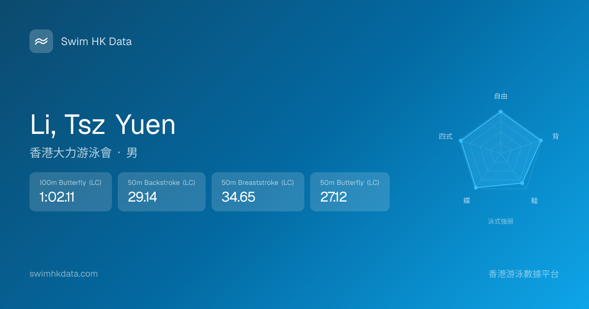 此圖表根據你所有比賽成績計算,顯示你在各泳式的相對強弱,僅供參考。繼續努力,每一次練習都會讓你更快更強!💪