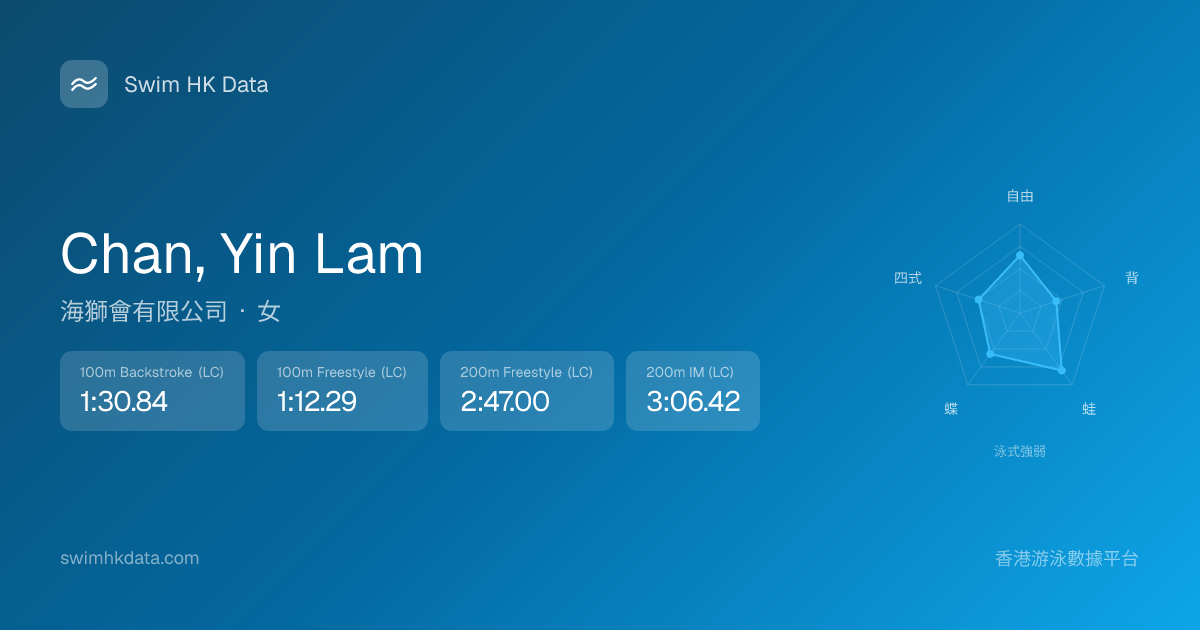 此圖表根據你所有比賽成績計算,顯示你在各泳式的相對強弱,僅供參考。繼續努力,每一次練習都會讓你更快更強!💪