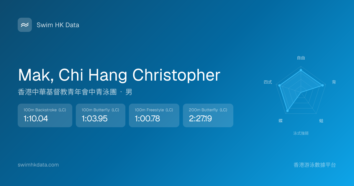 此圖表根據你所有比賽成績計算,顯示你在各泳式的相對強弱,僅供參考。繼續努力,每一次練習都會讓你更快更強!💪