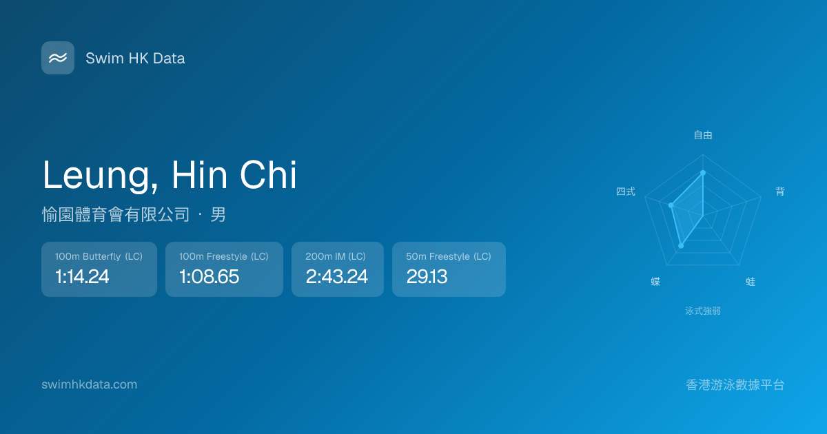 此圖表根據你所有比賽成績計算,顯示你在各泳式的相對強弱,僅供參考。繼續努力,每一次練習都會讓你更快更強!💪