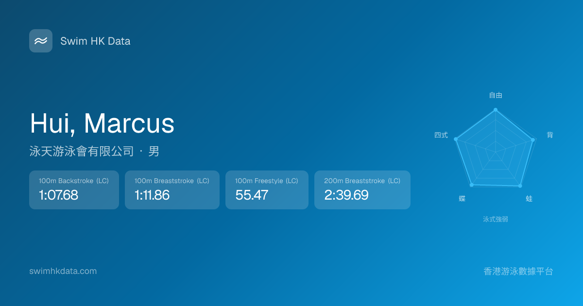 此圖表根據你所有比賽成績計算,顯示你在各泳式的相對強弱,僅供參考。繼續努力,每一次練習都會讓你更快更強!💪