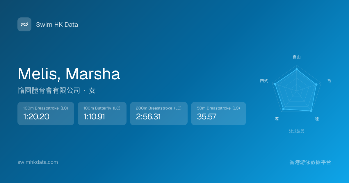 此圖表根據你所有比賽成績計算,顯示你在各泳式的相對強弱,僅供參考。繼續努力,每一次練習都會讓你更快更強!💪