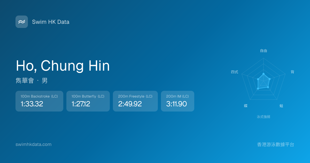 此圖表根據你所有比賽成績計算,顯示你在各泳式的相對強弱,僅供參考。繼續努力,每一次練習都會讓你更快更強!💪