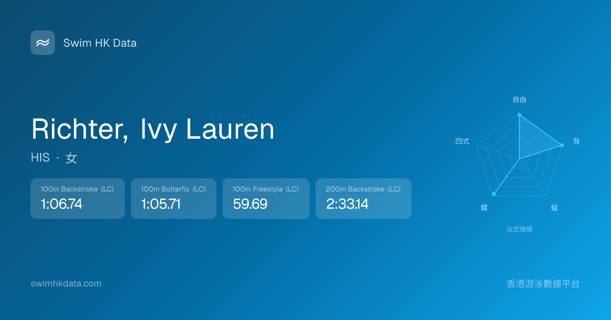 此圖表根據你所有比賽成績計算,顯示你在各泳式的相對強弱,僅供參考。繼續努力,每一次練習都會讓你更快更強!💪