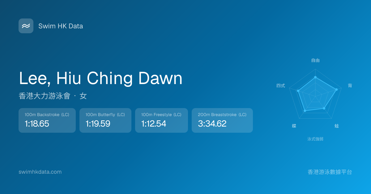 此圖表根據你所有比賽成績計算,顯示你在各泳式的相對強弱,僅供參考。繼續努力,每一次練習都會讓你更快更強!💪
