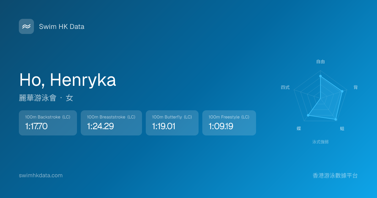此圖表根據你所有比賽成績計算,顯示你在各泳式的相對強弱,僅供參考。繼續努力,每一次練習都會讓你更快更強!💪