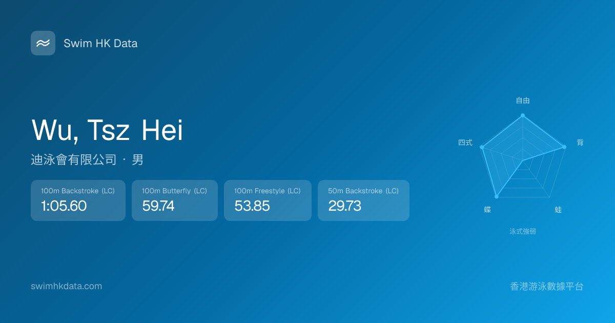 此圖表根據你所有比賽成績計算,顯示你在各泳式的相對強弱,僅供參考。繼續努力,每一次練習都會讓你更快更強!💪