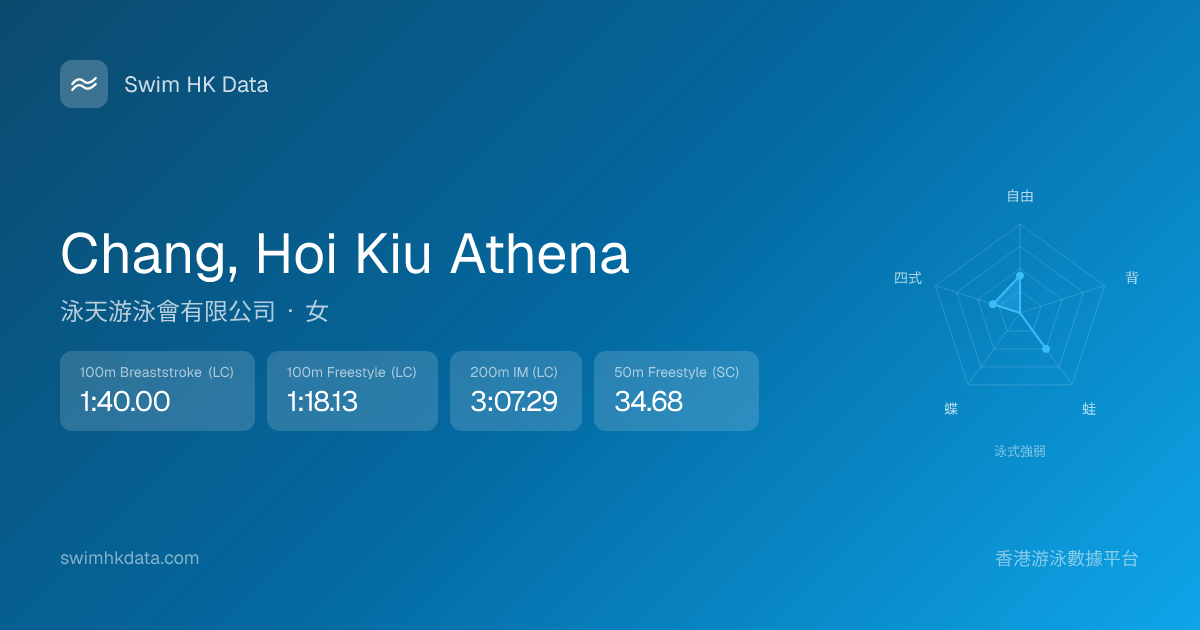 此圖表根據你所有比賽成績計算,顯示你在各泳式的相對強弱,僅供參考。繼續努力,每一次練習都會讓你更快更強!💪
