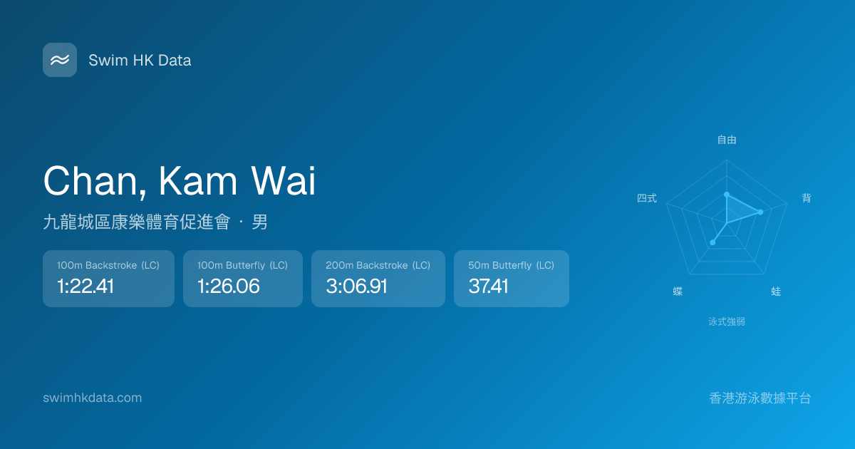 此圖表根據你所有比賽成績計算,顯示你在各泳式的相對強弱,僅供參考。繼續努力,每一次練習都會讓你更快更強!💪