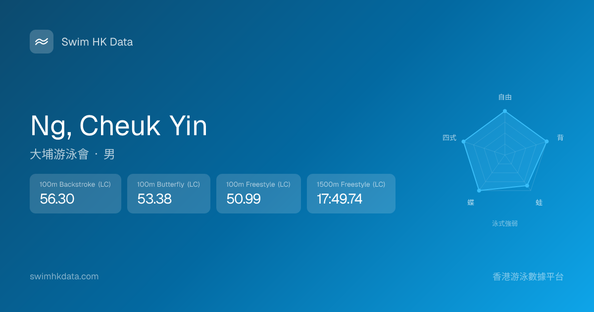 此圖表根據你所有比賽成績計算,顯示你在各泳式的相對強弱,僅供參考。繼續努力,每一次練習都會讓你更快更強!💪