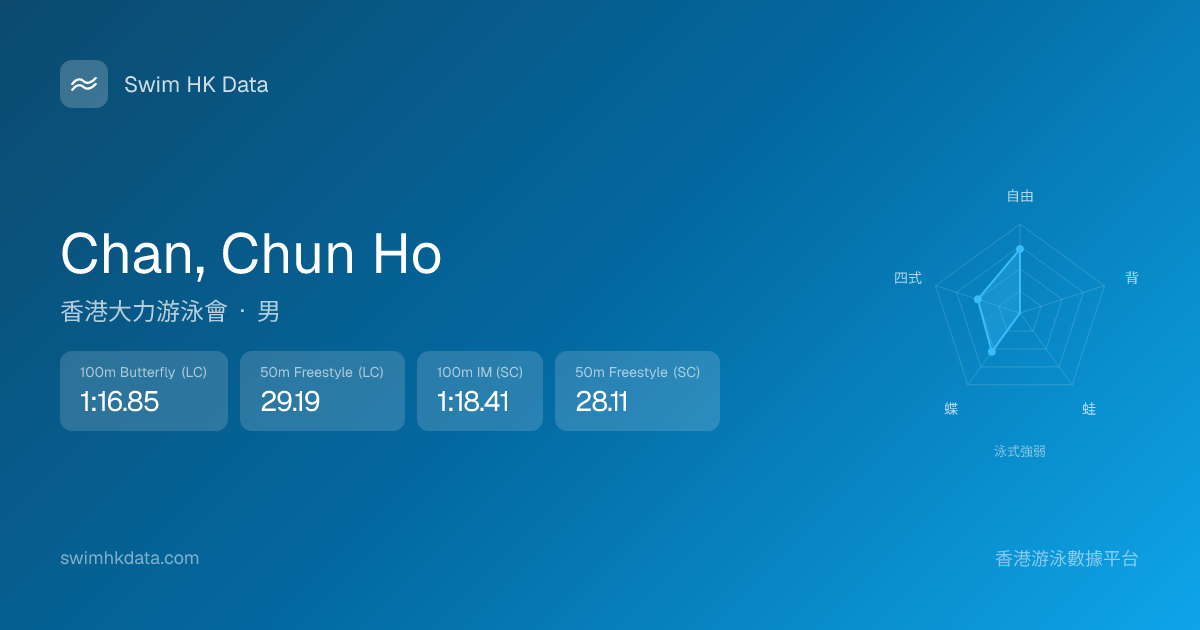 此圖表根據你所有比賽成績計算,顯示你在各泳式的相對強弱,僅供參考。繼續努力,每一次練習都會讓你更快更強!💪