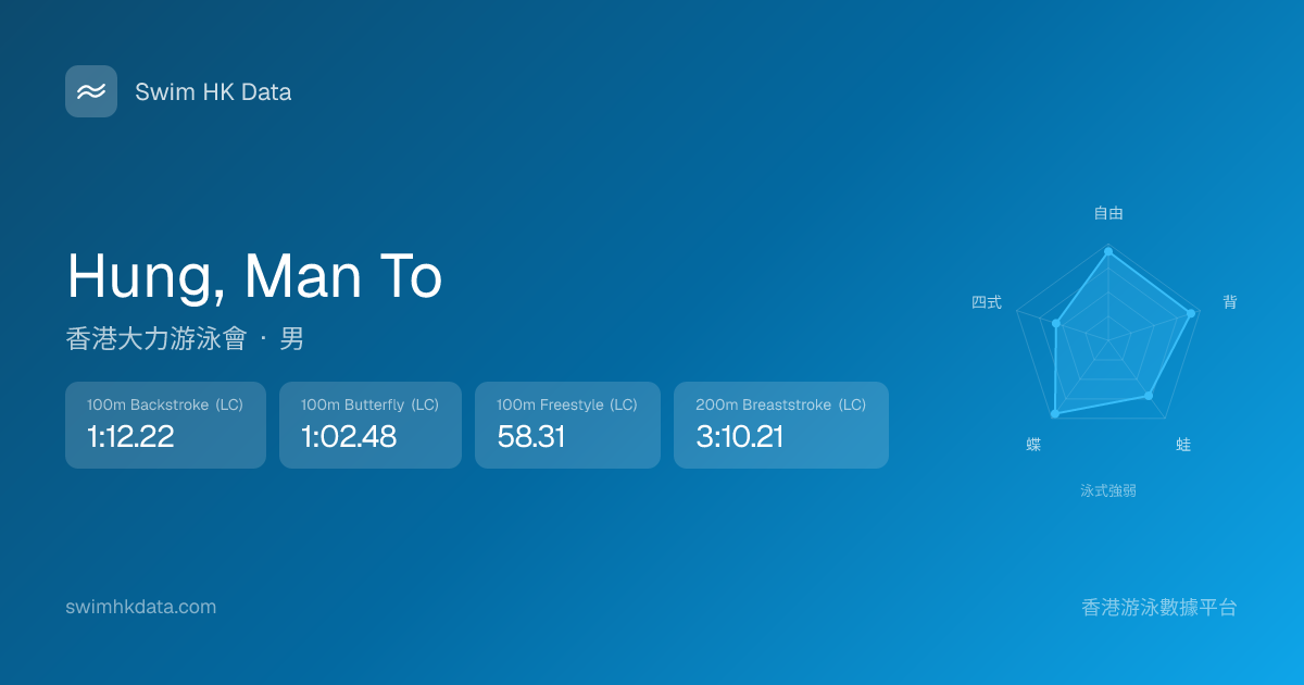 此圖表根據你所有比賽成績計算,顯示你在各泳式的相對強弱,僅供參考。繼續努力,每一次練習都會讓你更快更強!💪