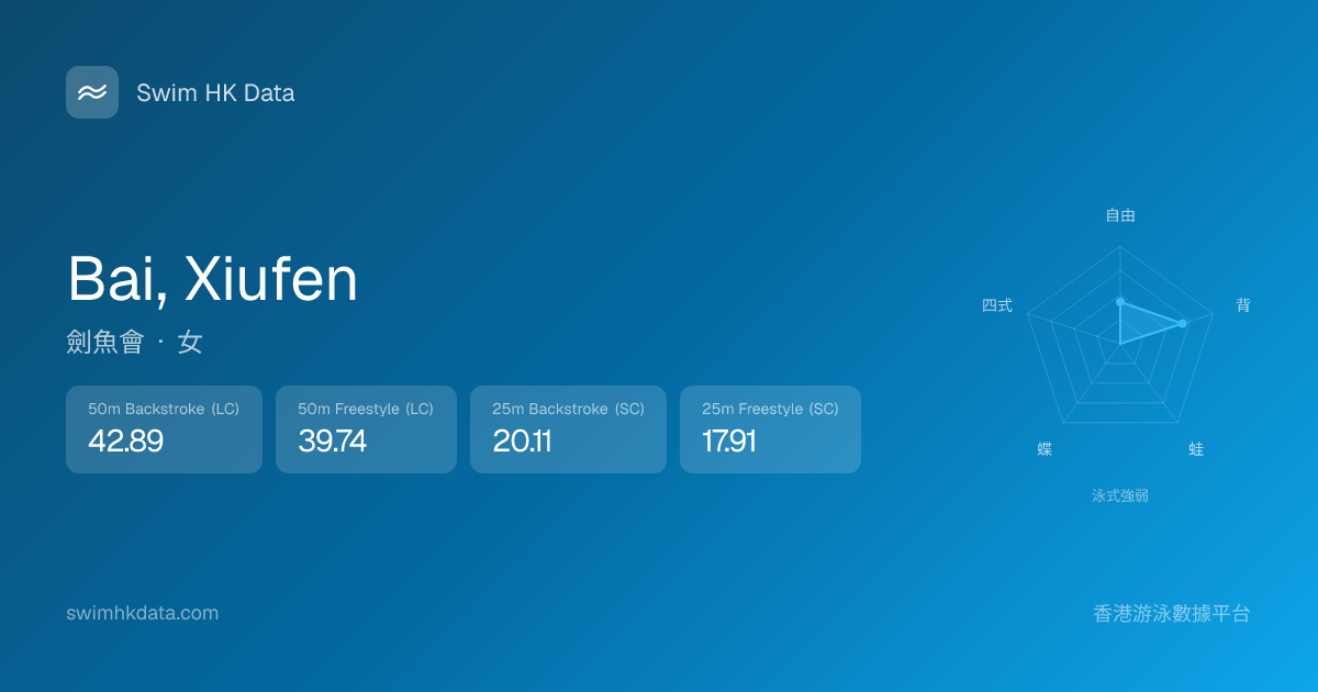 此圖表根據你所有比賽成績計算,顯示你在各泳式的相對強弱,僅供參考。繼續努力,每一次練習都會讓你更快更強!💪