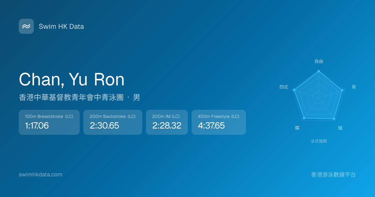 此圖表根據你所有比賽成績計算,顯示你在各泳式的相對強弱,僅供參考。繼續努力,每一次練習都會讓你更快更強!💪