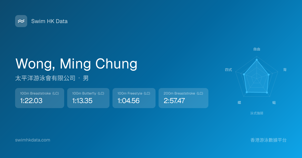 此圖表根據你所有比賽成績計算,顯示你在各泳式的相對強弱,僅供參考。繼續努力,每一次練習都會讓你更快更強!💪