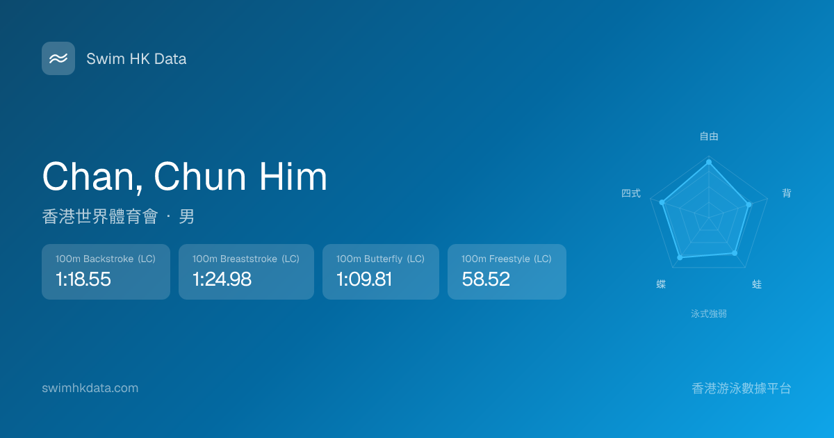 此圖表根據你所有比賽成績計算,顯示你在各泳式的相對強弱,僅供參考。繼續努力,每一次練習都會讓你更快更強!💪