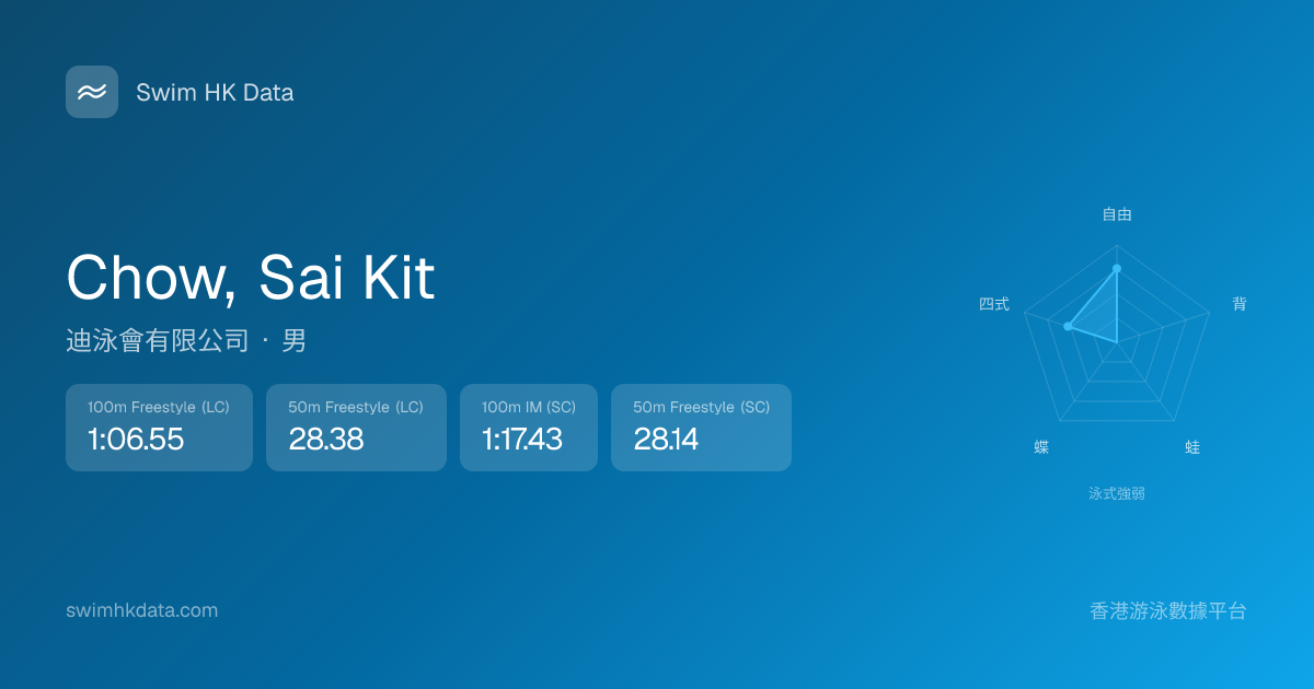 此圖表根據你所有比賽成績計算,顯示你在各泳式的相對強弱,僅供參考。繼續努力,每一次練習都會讓你更快更強!💪