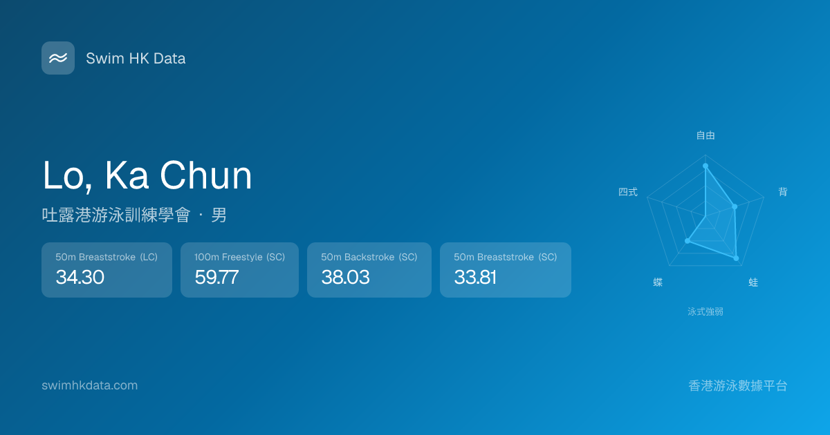 此圖表根據你所有比賽成績計算,顯示你在各泳式的相對強弱,僅供參考。繼續努力,每一次練習都會讓你更快更強!💪