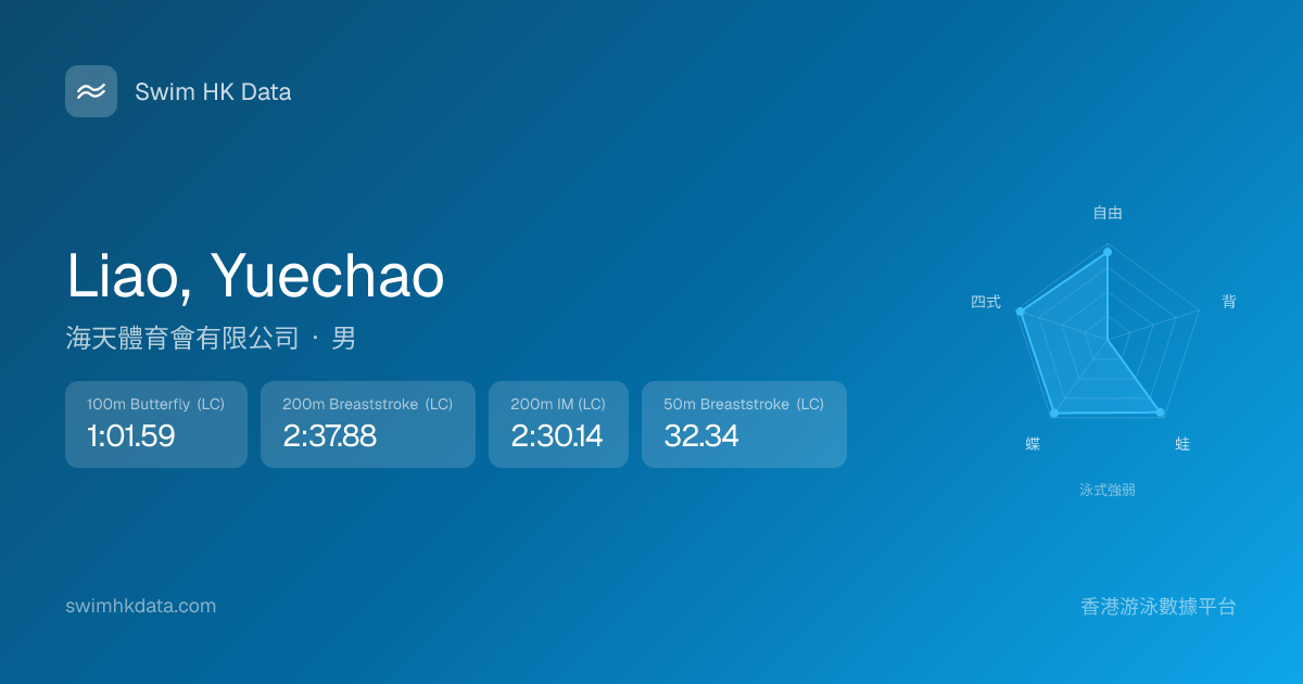 此圖表根據你所有比賽成績計算,顯示你在各泳式的相對強弱,僅供參考。繼續努力,每一次練習都會讓你更快更強!💪