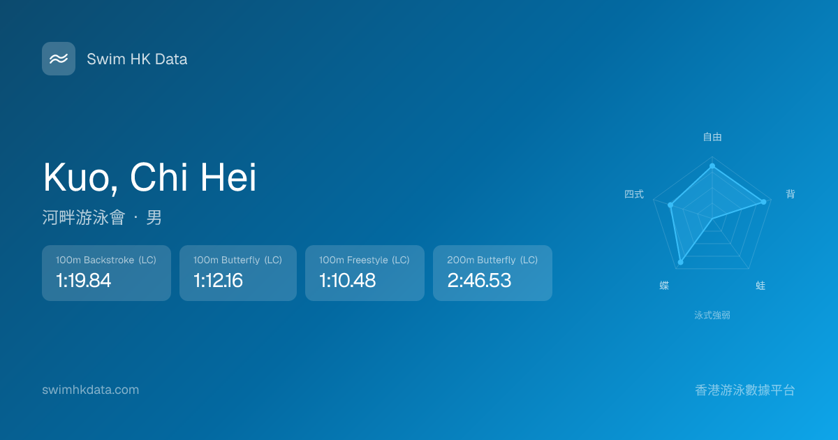 此圖表根據你所有比賽成績計算,顯示你在各泳式的相對強弱,僅供參考。繼續努力,每一次練習都會讓你更快更強!💪