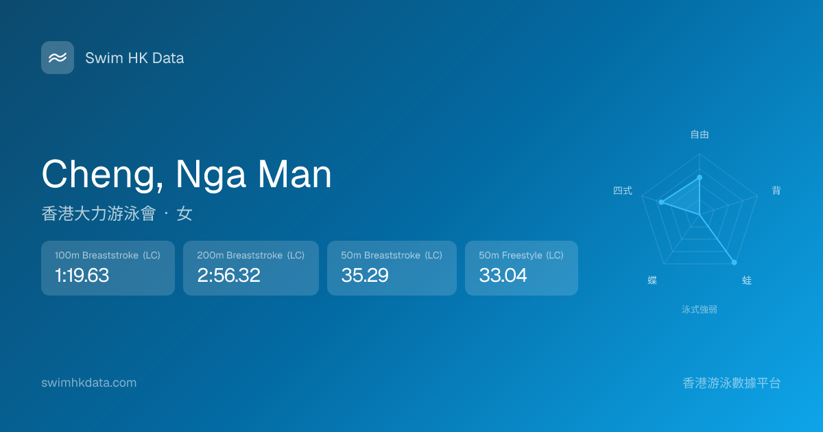 此圖表根據你所有比賽成績計算,顯示你在各泳式的相對強弱,僅供參考。繼續努力,每一次練習都會讓你更快更強!💪