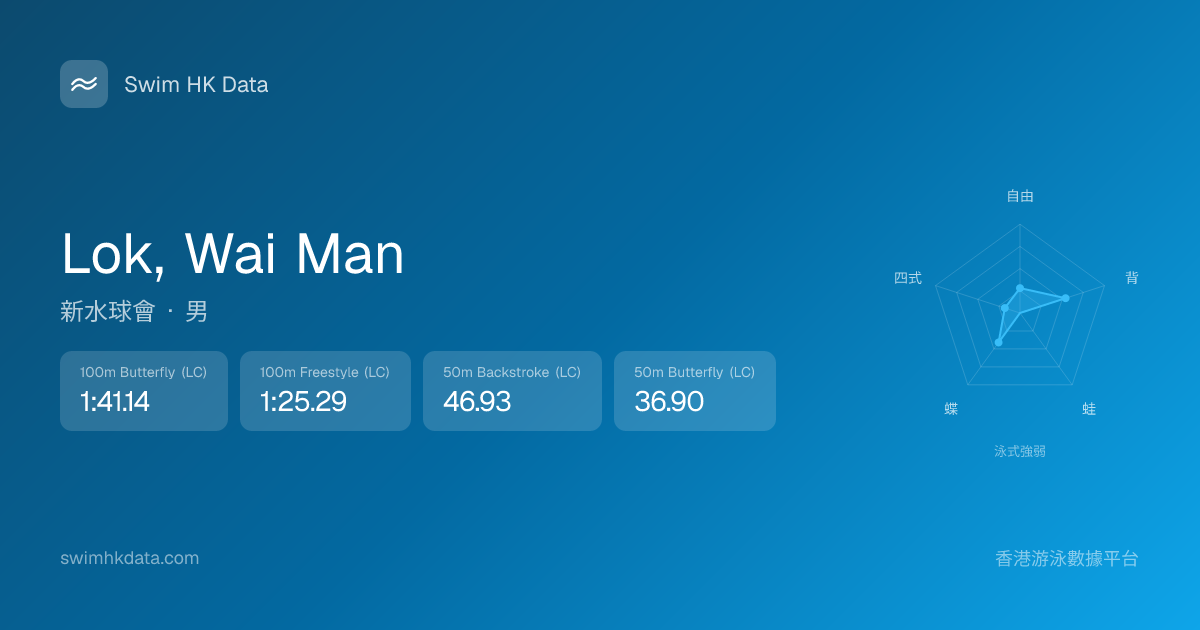 此圖表根據你所有比賽成績計算,顯示你在各泳式的相對強弱,僅供參考。繼續努力,每一次練習都會讓你更快更強!💪