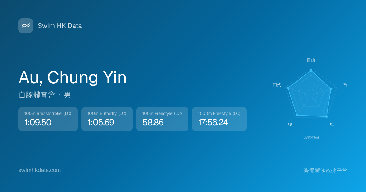 此圖表根據你所有比賽成績計算,顯示你在各泳式的相對強弱,僅供參考。繼續努力,每一次練習都會讓你更快更強!💪