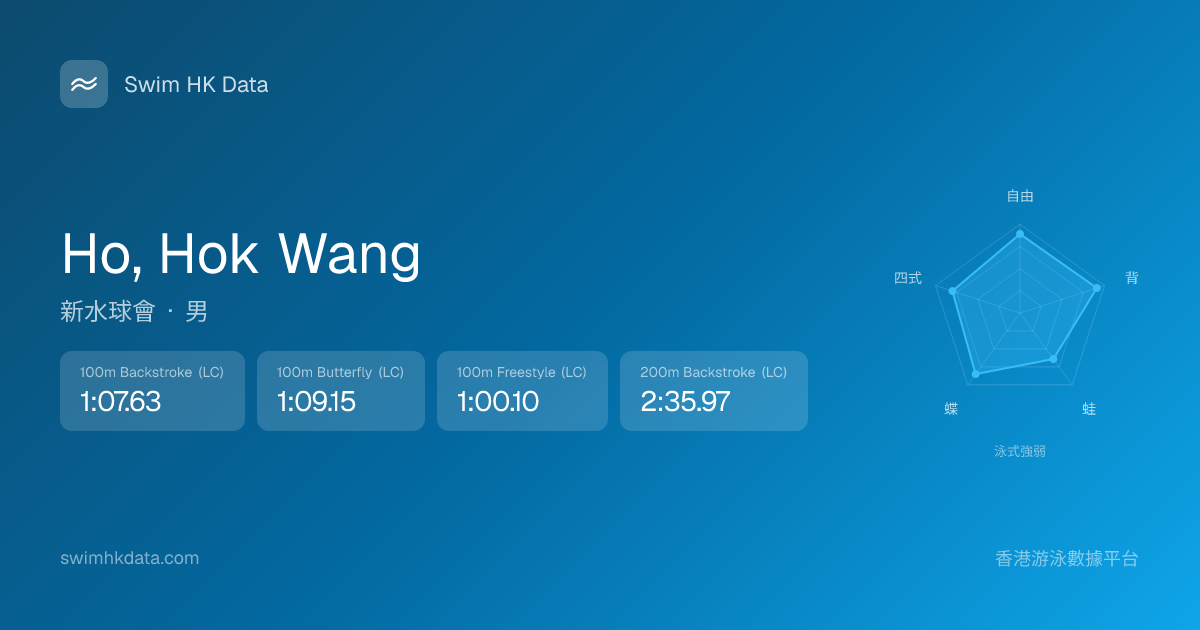 此圖表根據你所有比賽成績計算,顯示你在各泳式的相對強弱,僅供參考。繼續努力,每一次練習都會讓你更快更強!💪