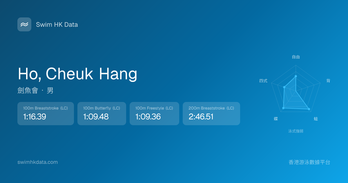 此圖表根據你所有比賽成績計算,顯示你在各泳式的相對強弱,僅供參考。繼續努力,每一次練習都會讓你更快更強!💪