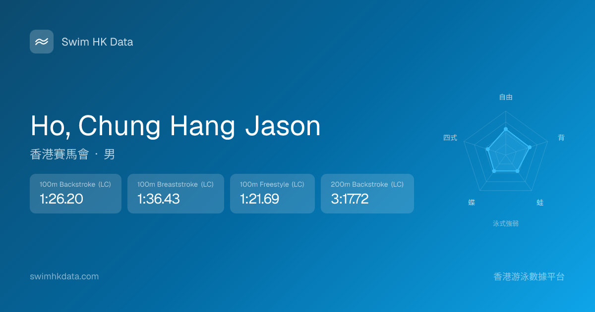 此圖表根據你所有比賽成績計算,顯示你在各泳式的相對強弱,僅供參考。繼續努力,每一次練習都會讓你更快更強!💪
