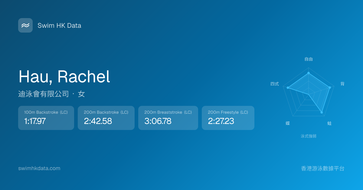 此圖表根據你所有比賽成績計算,顯示你在各泳式的相對強弱,僅供參考。繼續努力,每一次練習都會讓你更快更強!💪