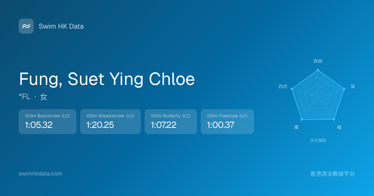 此圖表根據你所有比賽成績計算,顯示你在各泳式的相對強弱,僅供參考。繼續努力,每一次練習都會讓你更快更強!💪