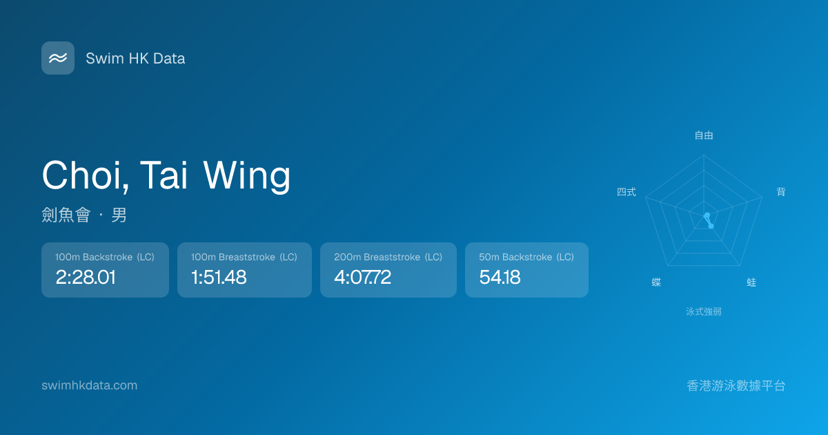 此圖表根據你所有比賽成績計算,顯示你在各泳式的相對強弱,僅供參考。繼續努力,每一次練習都會讓你更快更強!💪