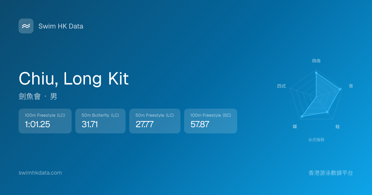 此圖表根據你所有比賽成績計算,顯示你在各泳式的相對強弱,僅供參考。繼續努力,每一次練習都會讓你更快更強!💪