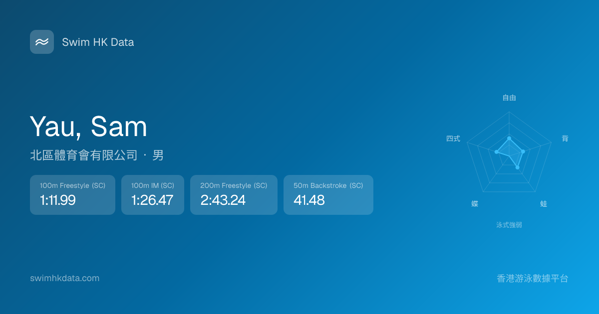 此圖表根據你所有比賽成績計算,顯示你在各泳式的相對強弱,僅供參考。繼續努力,每一次練習都會讓你更快更強!💪