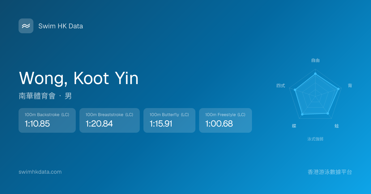 此圖表根據你所有比賽成績計算,顯示你在各泳式的相對強弱,僅供參考。繼續努力,每一次練習都會讓你更快更強!💪